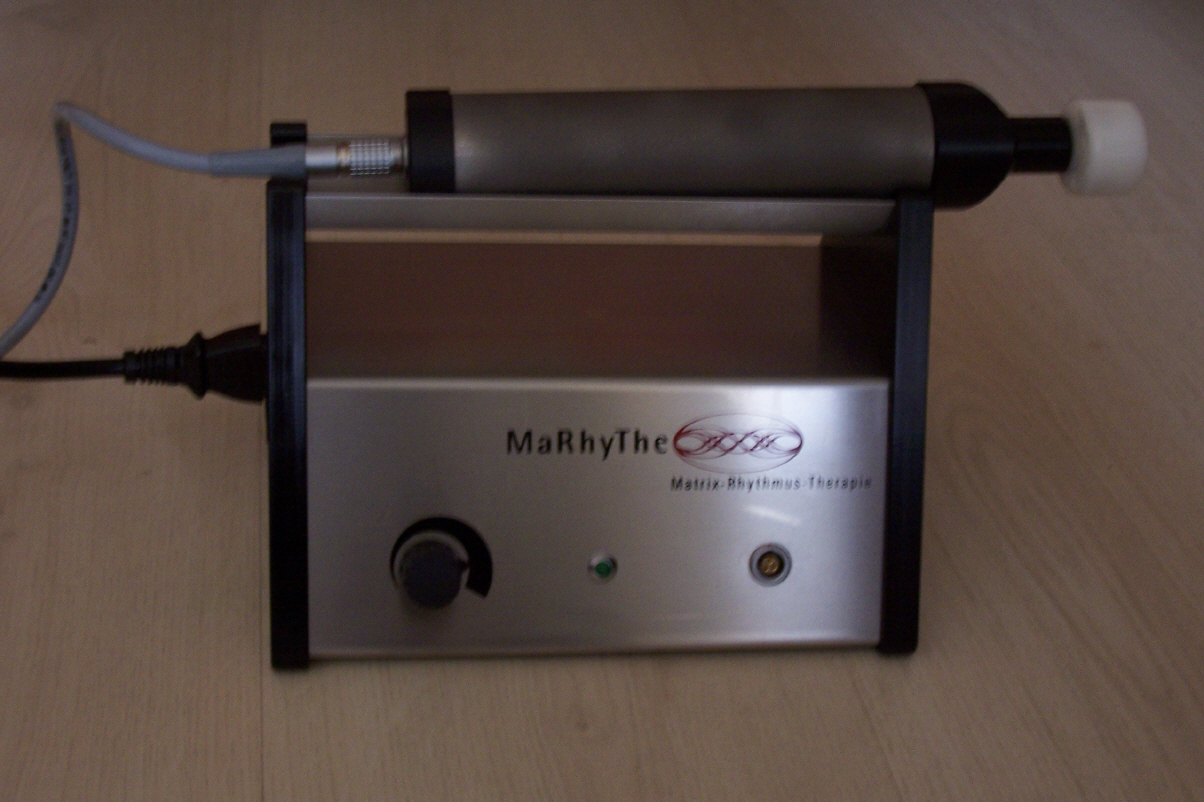 Matrixrhythmustherapie  Eine Sonderform der Vibrationsmassage ist die Matrixrhythmustherapie. Hierzu wird ein spezielles Massagegerät verwendet, das auch in der Humanmedizin zur Anwendung kommt. Es handelt sich um eine regenerative ganzheitliche Therapieform zur Behandlung chronischer Erkrankungen des Nerven-, Stütz- und Bewegungssystems. Diese Methode wurde in den Forschungslabors der Universität Erlangen erarbeitet. Sie baut auf dem Schwingungsverhalten der Skelettmuskulatur auf. Solche Körperrhythmen sind zum Beispiel auch Hirn- und Herzrhythmus.